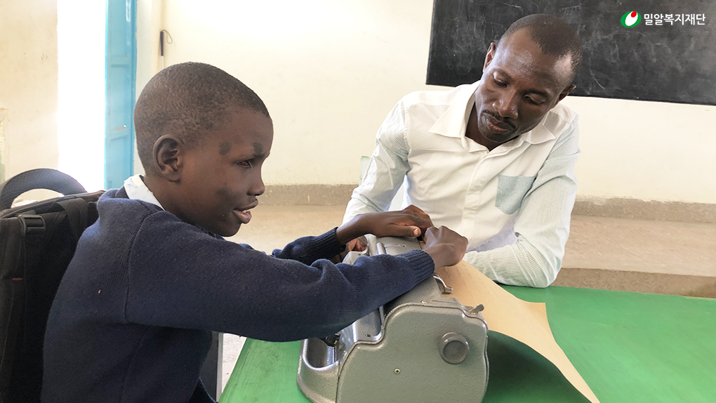 점자교육을 받고 있는 케냐의 시각장애인 학생