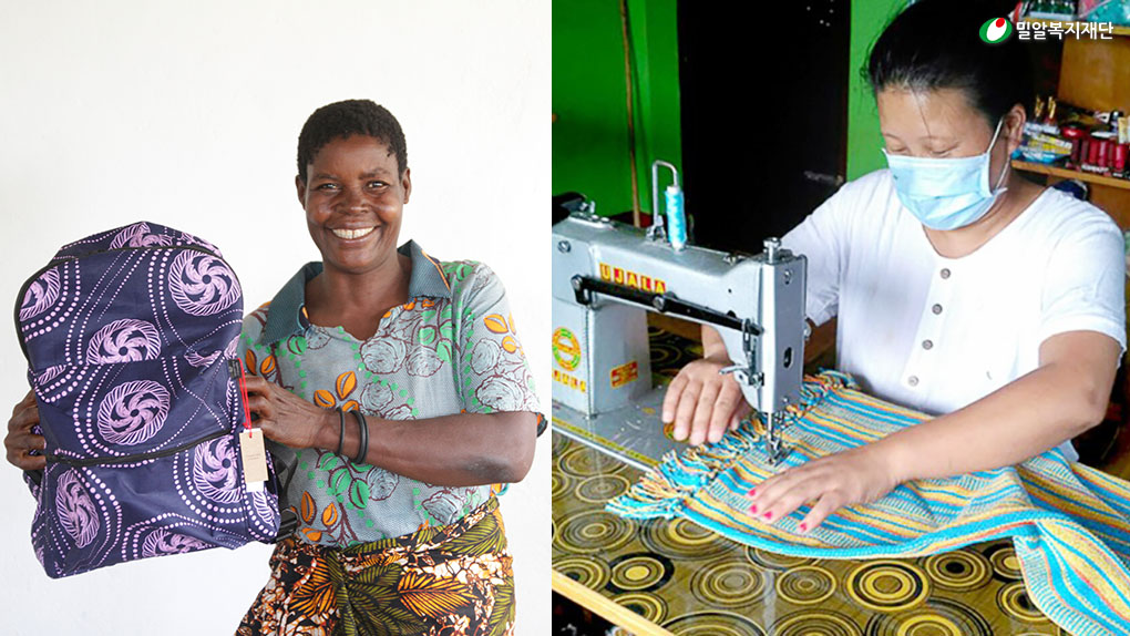 (왼쪽) 말라위 장애인 근로자와 직접 만든 가방