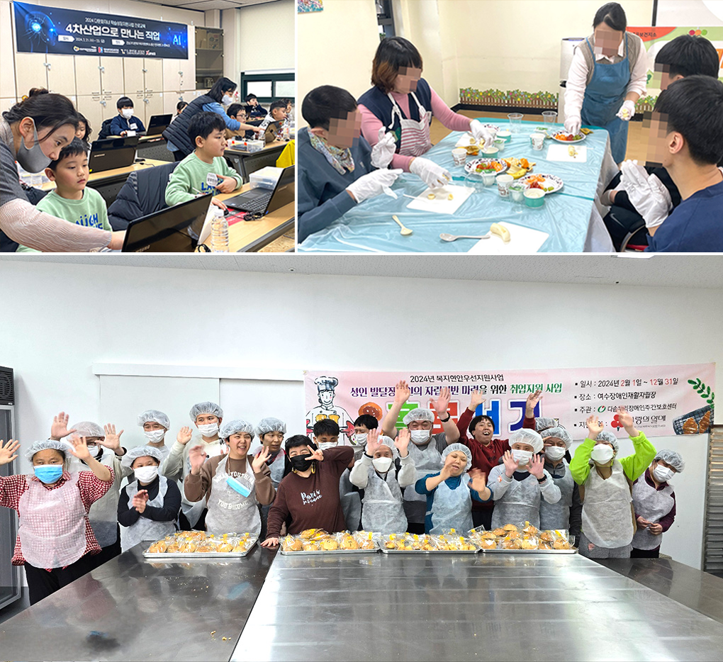 강남세움주간보호센터는 이용자 대상 영양교육을 진행했으며, 다솜누리장애인주간보호센터는 취업지원 사업의 일환으로 제빵·누룽지 만들기 프로그램을 진행했습니다. 강남구다문화가족지원센터는 다문화 아동을 대상으로 코딩, 드론 등의 4차 산업 진로체험·교육을 실시했습니다.