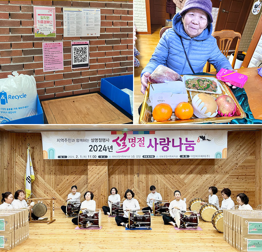 쌍봉종합사회복지관(대성FA 후원)과 도봉재가노인지원센터(원코리아 후원)는 취약계층에게 각각 명절 선물세트와 명절 음식을 지원했습니다. 굿윌스토어 밀알대전유성점은 ㈜네패스 기업 임직원들로부터 장애인 일자리 창출을 위한 기증물품을 전달받았습니다.