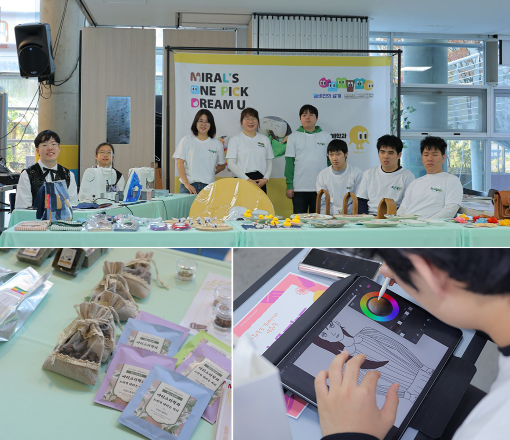 밀알드림대학은 전공 교육뿐만 아니라 학생들이 친구들과 특별한 추억을 쌓을 수 있도록 다양한 교내 활동을 제공합니다. 그중 학생들의 가장 열렬한 환호를 받는 것은 밀알드림대학만의 축제! ‘밀알드림 학과박람회’입니다. 드림대학 학생들은 학과 소개, 작품 전시, 학과별 체험 프로그램 등을 운영하며 친구들과 함께 서로의 성장을 응원하고 미래의 설렘을 나눕니다.