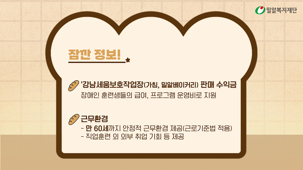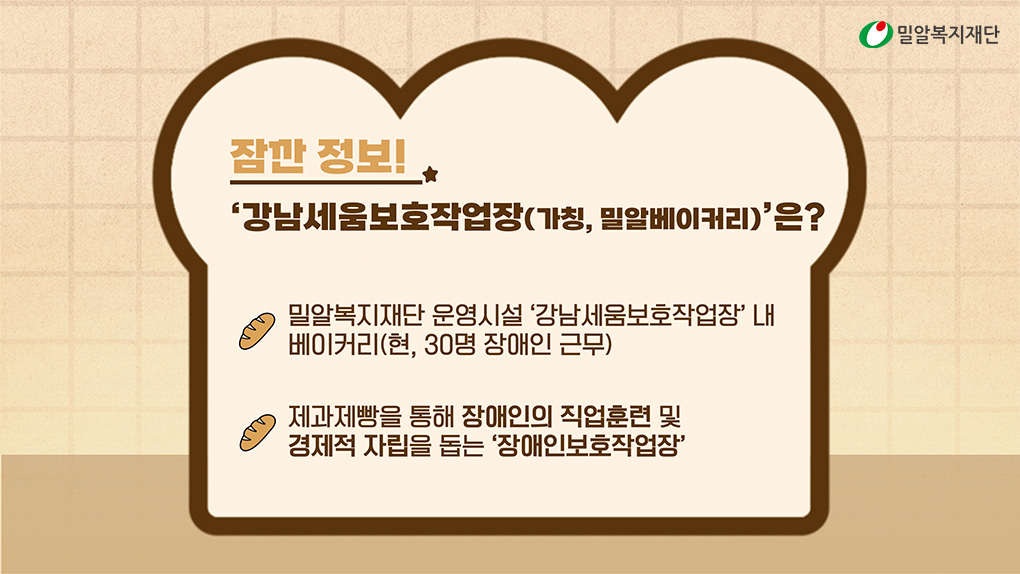‘강남세움보호작업장(가칭, 밀알베이커리)’의 빵을 여러분도 함께 경험해 보는 건 어떨까요?