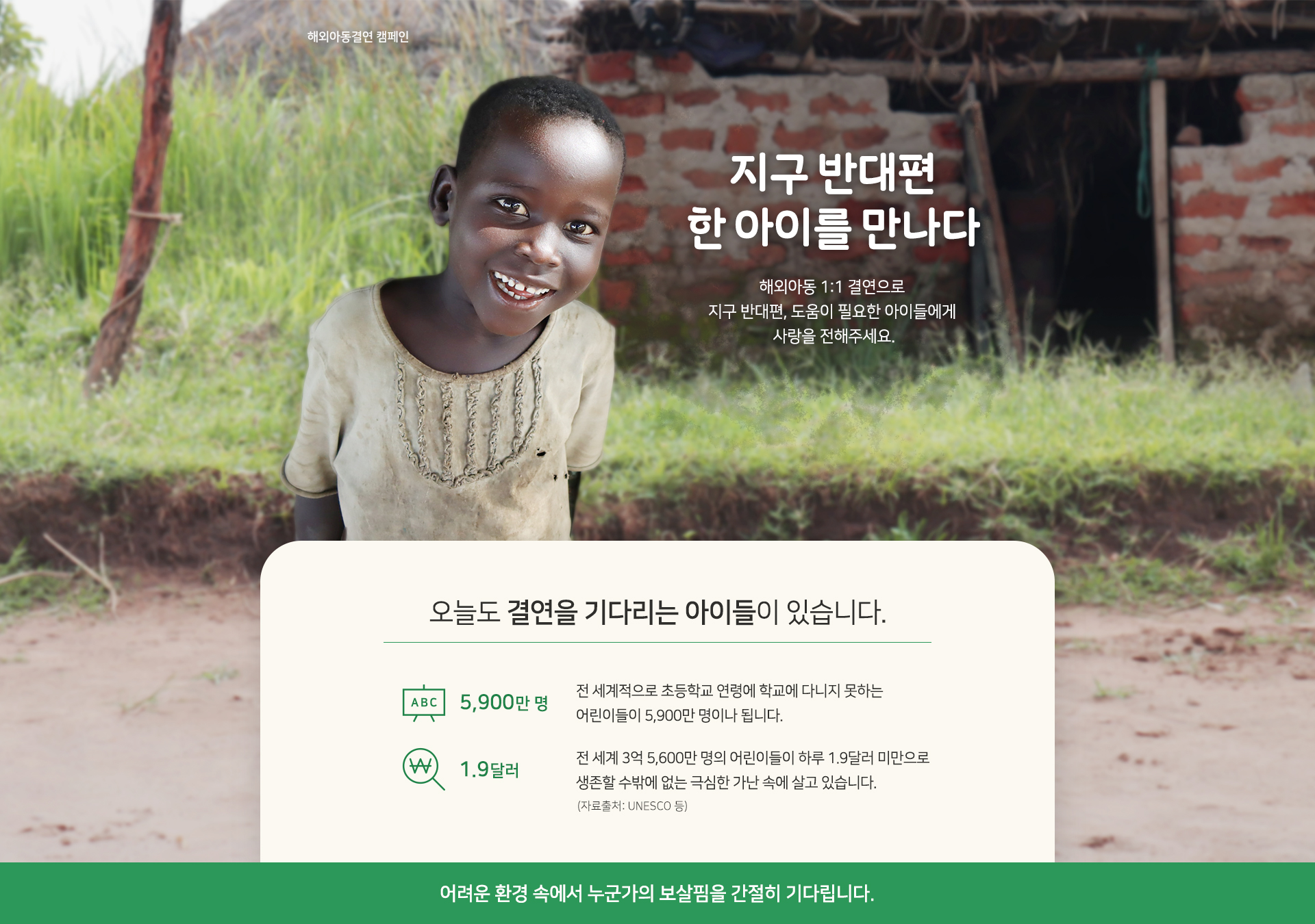 지구 반대편 한 아이를 만나다. 해외아동 1:1 결연으로 지구 반대편, 도움이 필요한 아이들에게 사랑을 전해주세요.