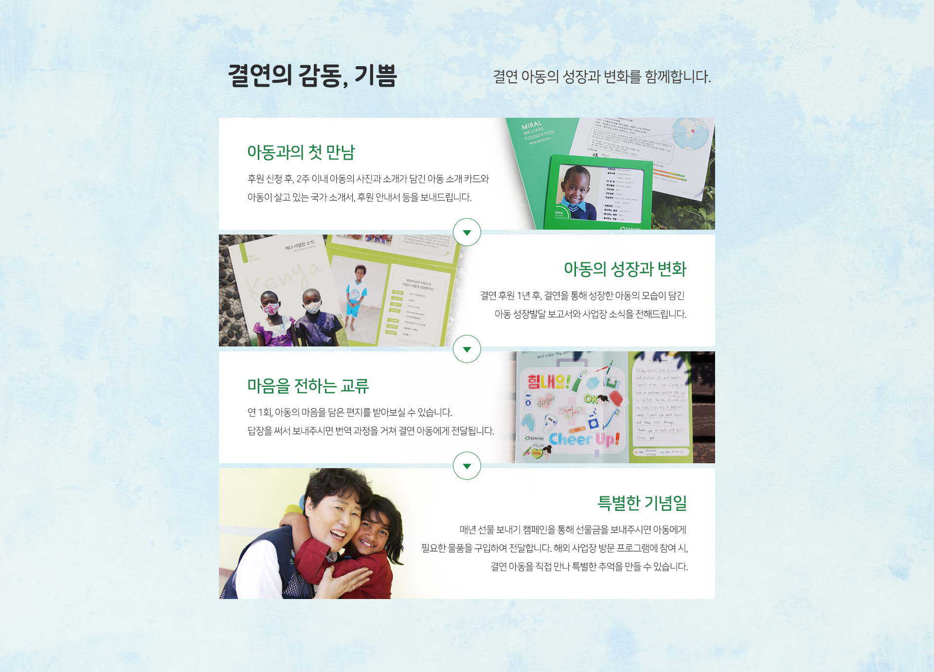 결연 후원 1년 후, 결연을 통해 성장한 아동의 모습이 담긴
