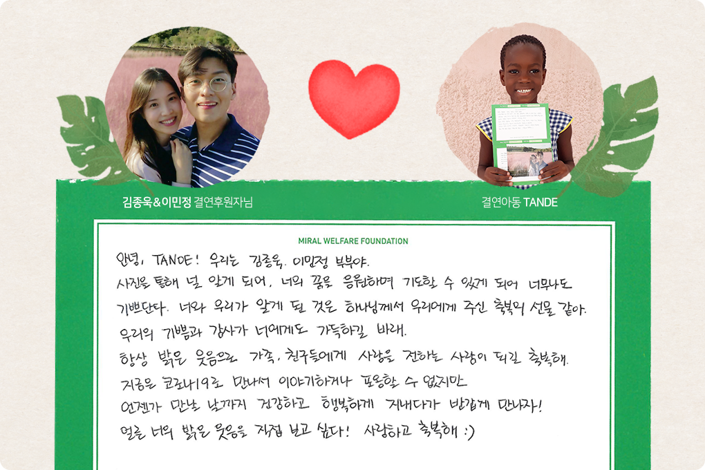 5. 김종욱&이민정 결연후원자님 | 결연아동 TANDE