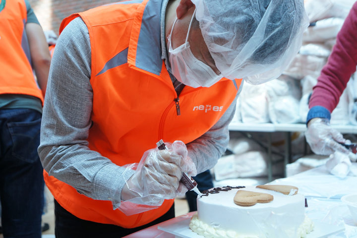 지난 26일(수), 충북 오창에 위치한 ㈜네페스 오창캠퍼스에서는 ‘특별한 케이크 키트 만들기’ 봉사활동이 진행되었습니다. 밀알복지재단과 함께한 이번 ‘특별한 케이크 키트 만들기’ 활동에는 임직원 50명 참여하여 각자 케이크를 2개씩 만들고, 직접 만든 케이크와 이불, 학용품을 하나의 키트로 묶어 청주지역 지역아동센터를 통해 저소득소외계층 아동 100명에게 지원하였습니다.