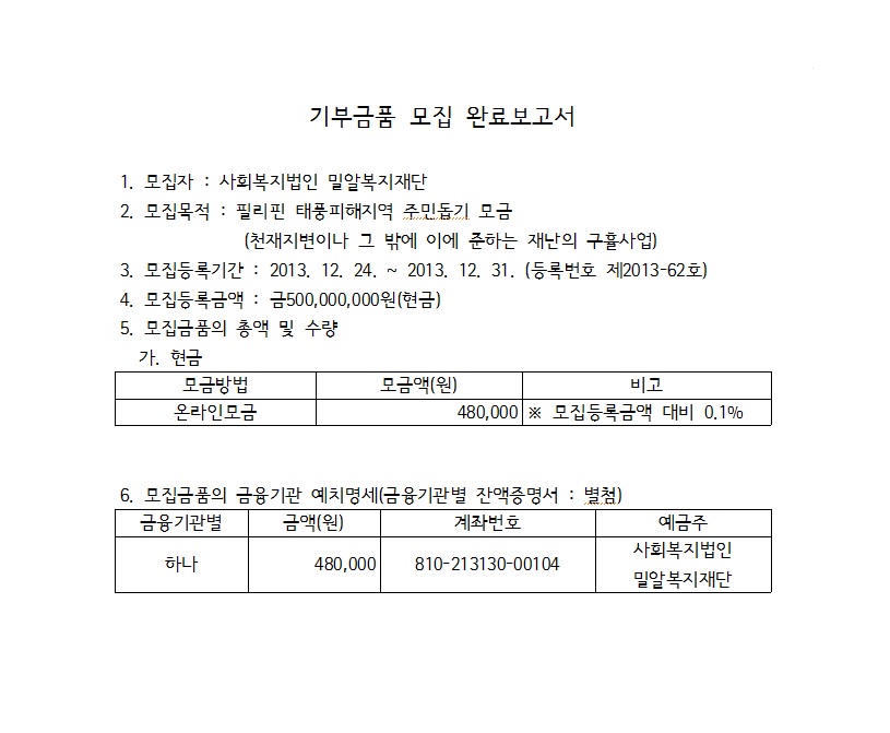 2013년 기부금품모집 완료보고(2013.12.24 ~ 12.31)