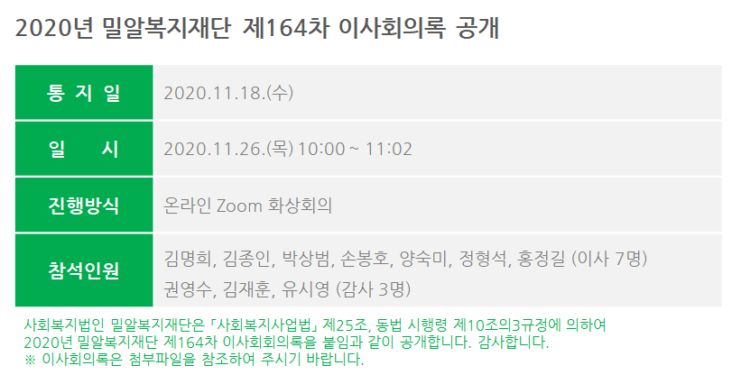 제164차 이사회회의록 공개
