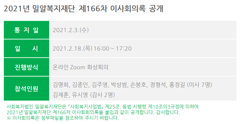 제166차 이사회회의록 공개