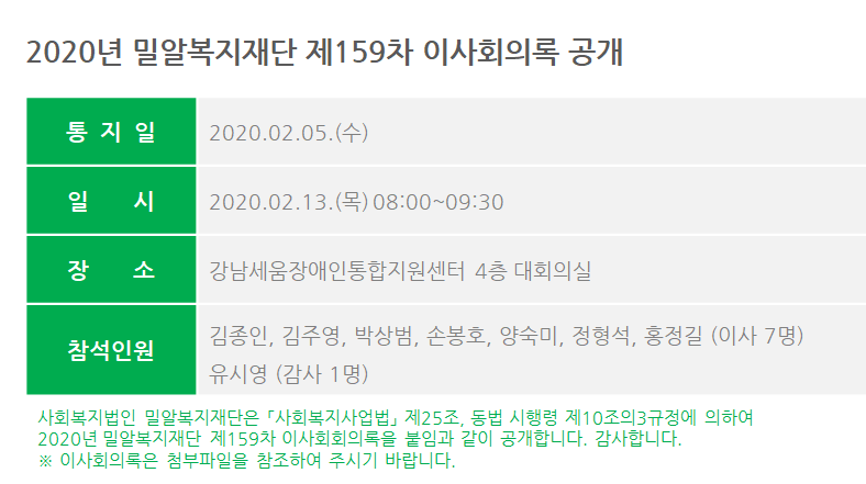 제159차 이사회회의록 공개