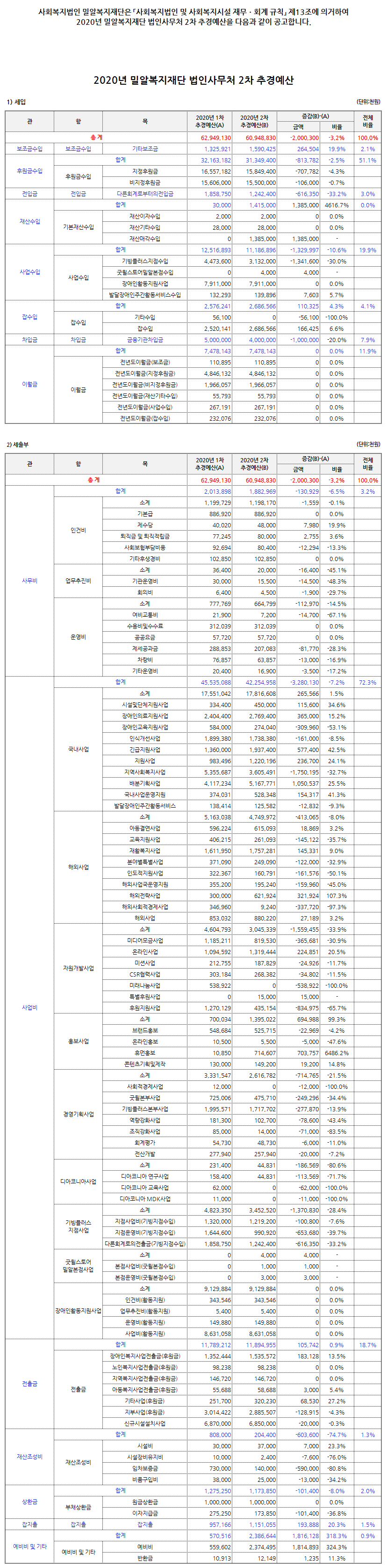 2020년 밀알복지재단 법인사무처 2차 추가경정예산 공고