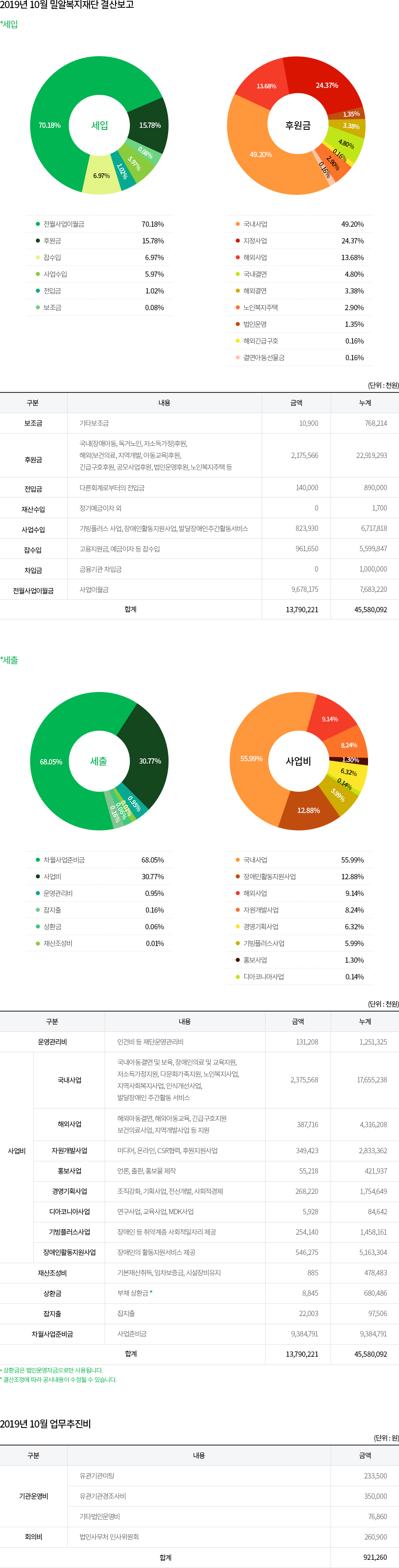 2019년 10월 밀알복지재단 법인사무처 결산보고 및 업무추진비 공개