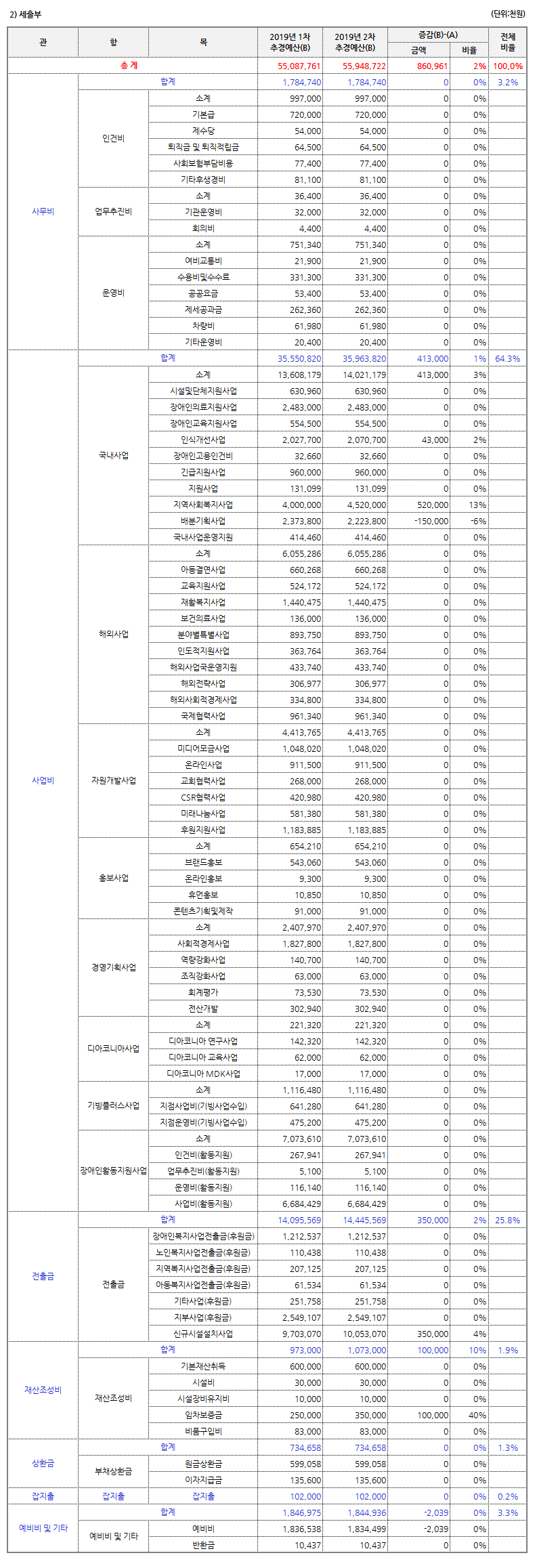 2019년 8월 밀알복지재단 법인사무처 결산보고 및 업무추진비 공개