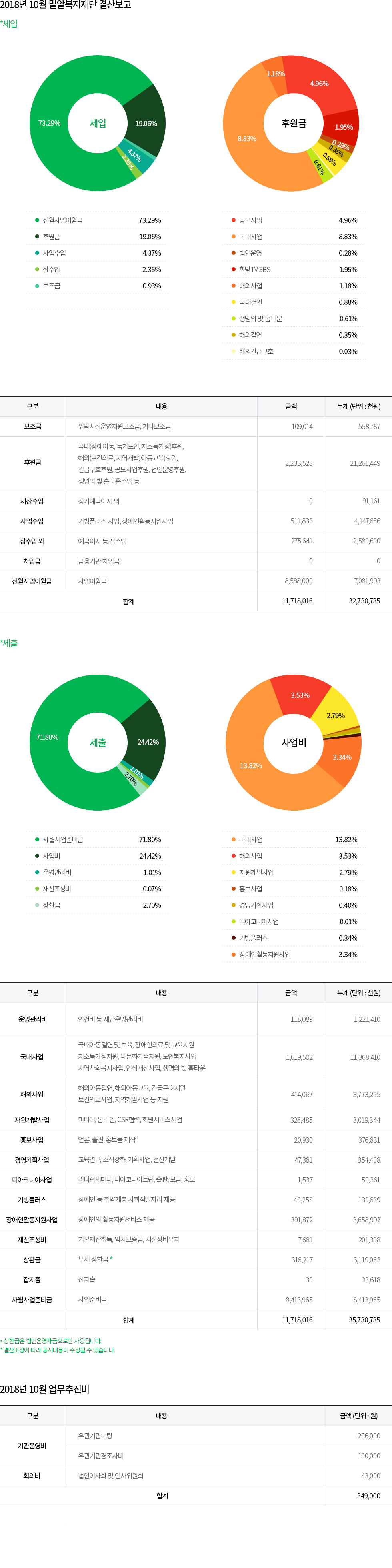 2018년 10월 밀알복지재단 법인사무처 결산보고 및 업무추진비 공개
