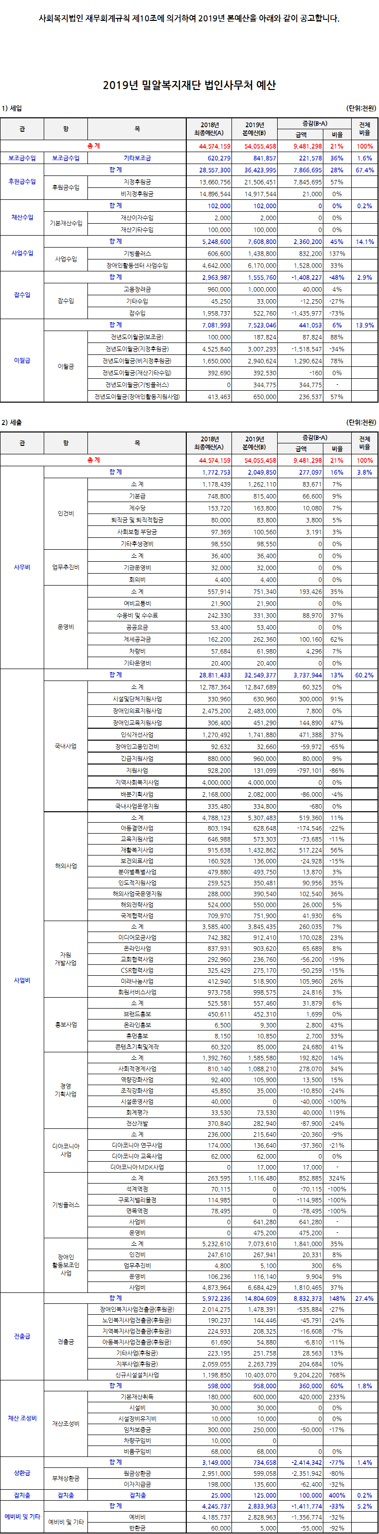 이전 2018년 11월 밀알복지재단 법인사무처 결산보고 및 업무추진비 공개 다음 2018년 12월 밀알복지재단 법인사무처 결산보고 및 업무추진비 공개