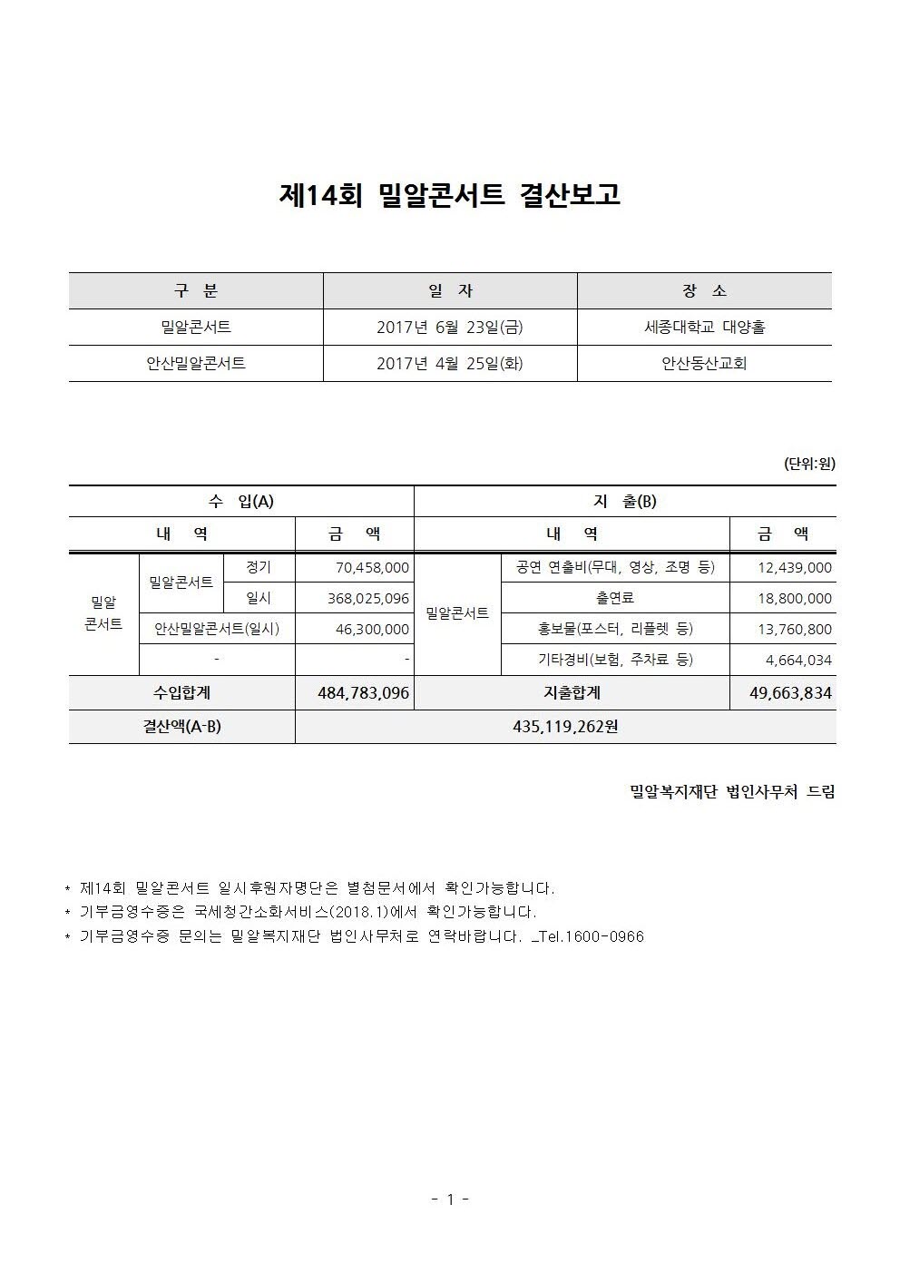 제14회 밀알콘서트 결산보고