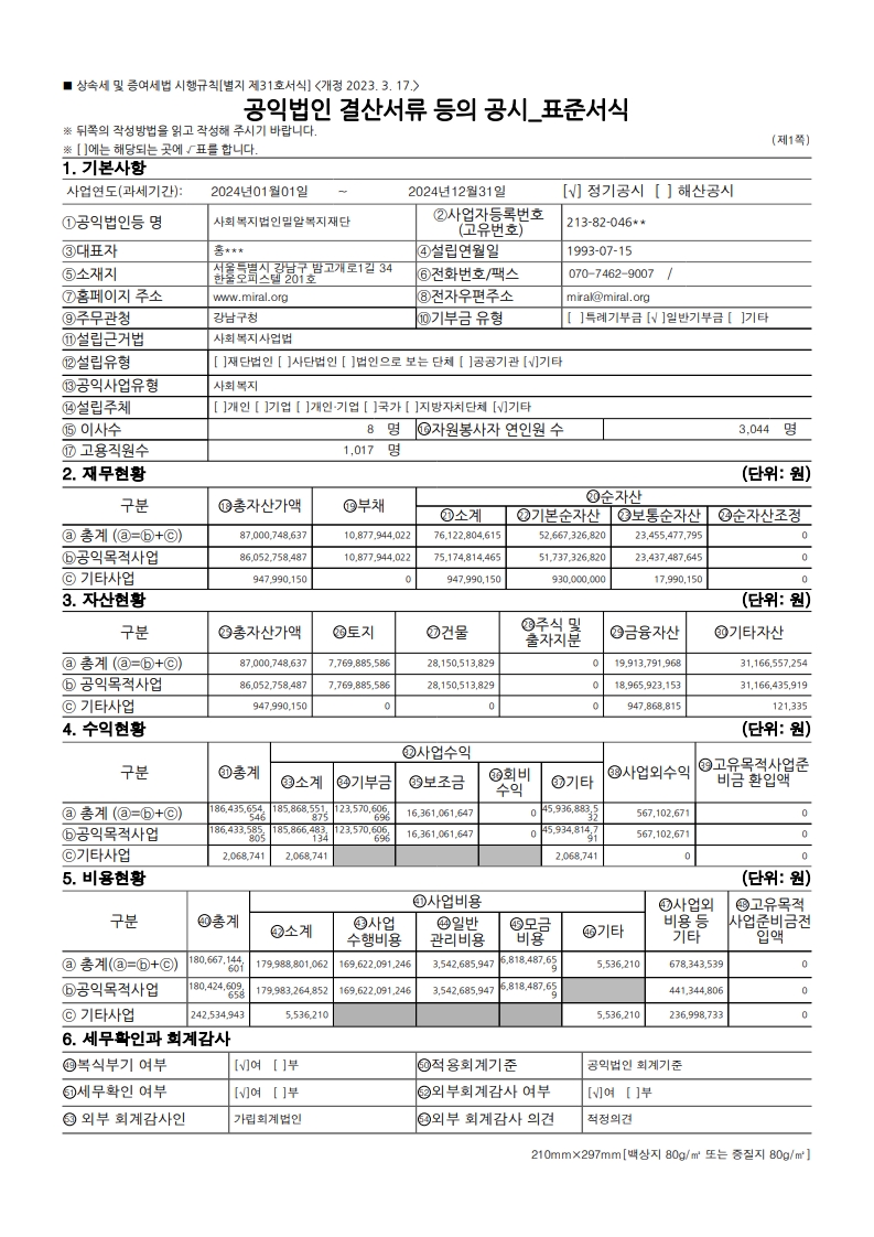 2024년도 공익법인 결산서류를 국세청 인터넷 홈페이지에 공시하였음을 안내드립니다.