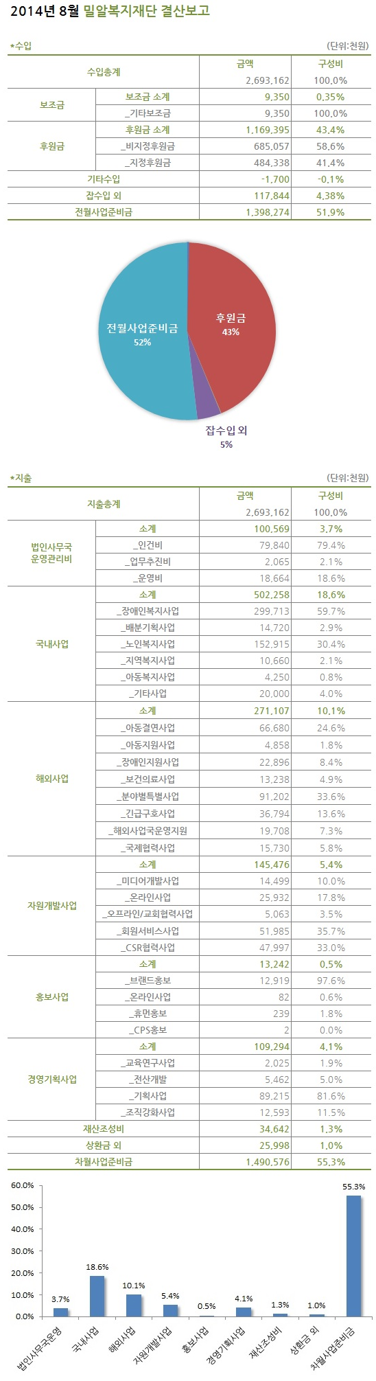 2014년 8월 밀알복지재단 결산보고