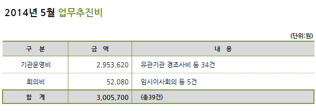 2014년 5월 밀알복지재단 업무추진비 공개
