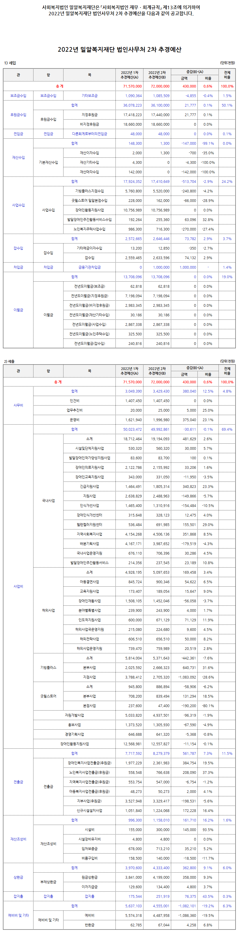 2022년 밀알복지재단 법인사무처 2차 추가경정예산 공고