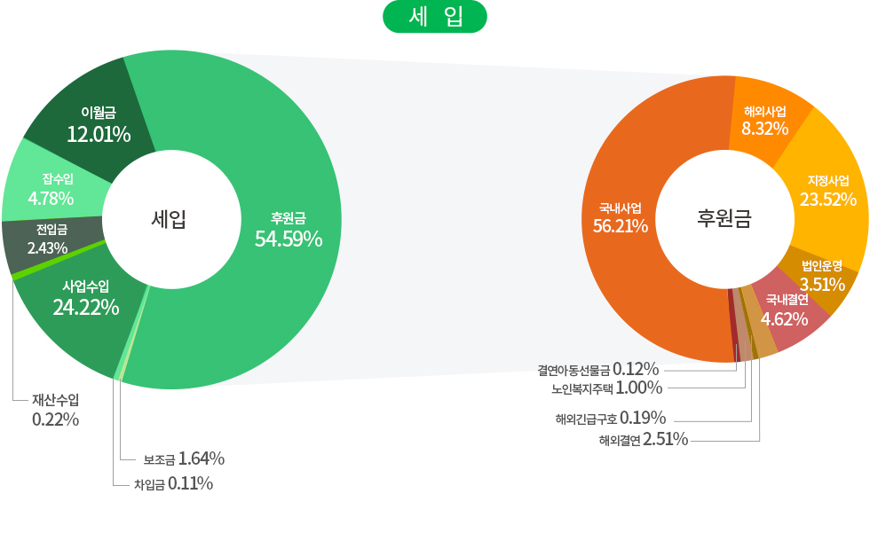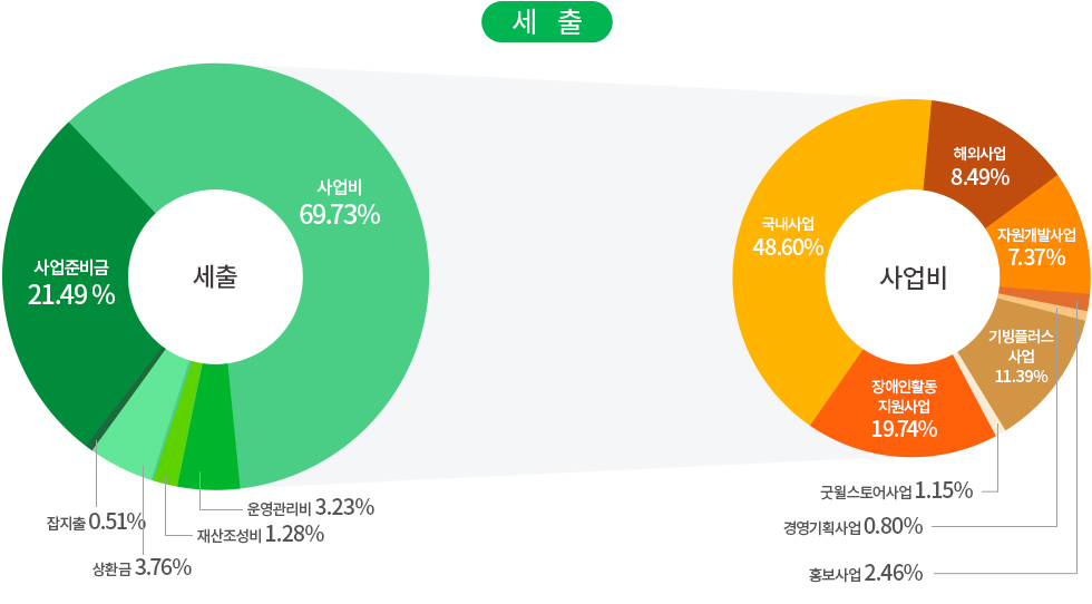 사업비 국내사업 국내아동결연 및 보육, 장애인의료 및 교육지원,