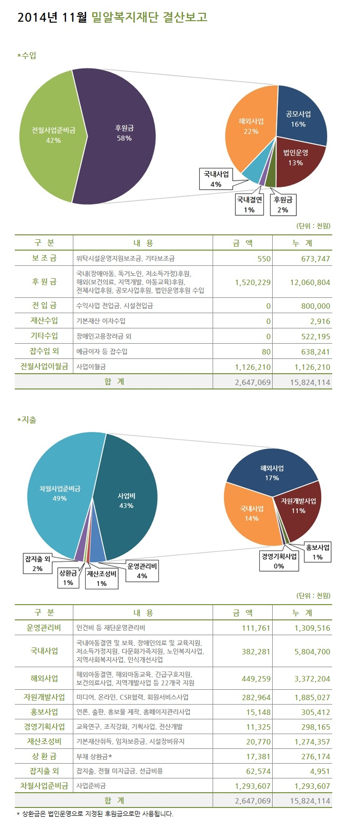 2014년 11월 밀알복지재단 결산보고