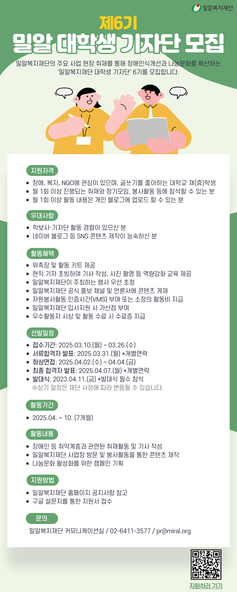 '밀알복지재단 대학생 기자단' 6기를 모집합니다.