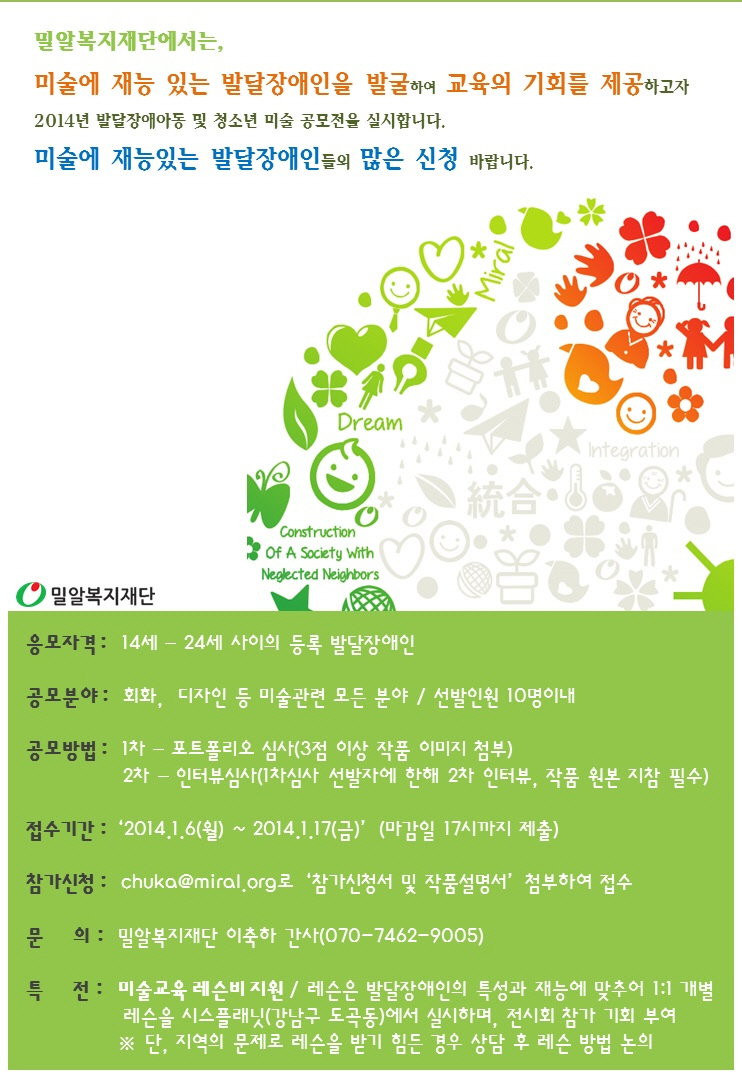 2014년 발달장애아동 및 청소년 미술 공모전 모집