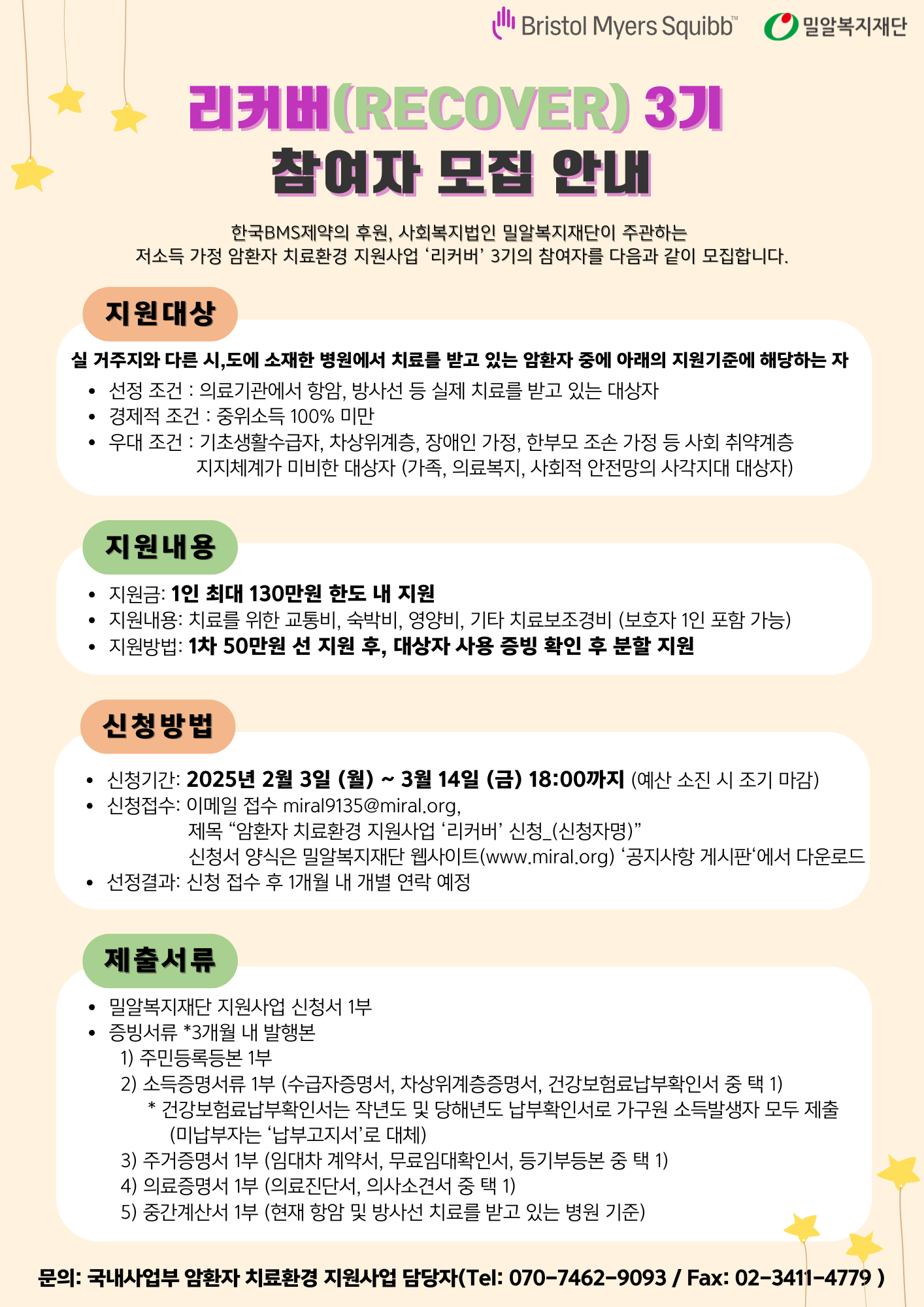 [마감]한국BMS제약과 함께하는 암환자 치료환경 지원사업 리커버 3기 대상자 모집