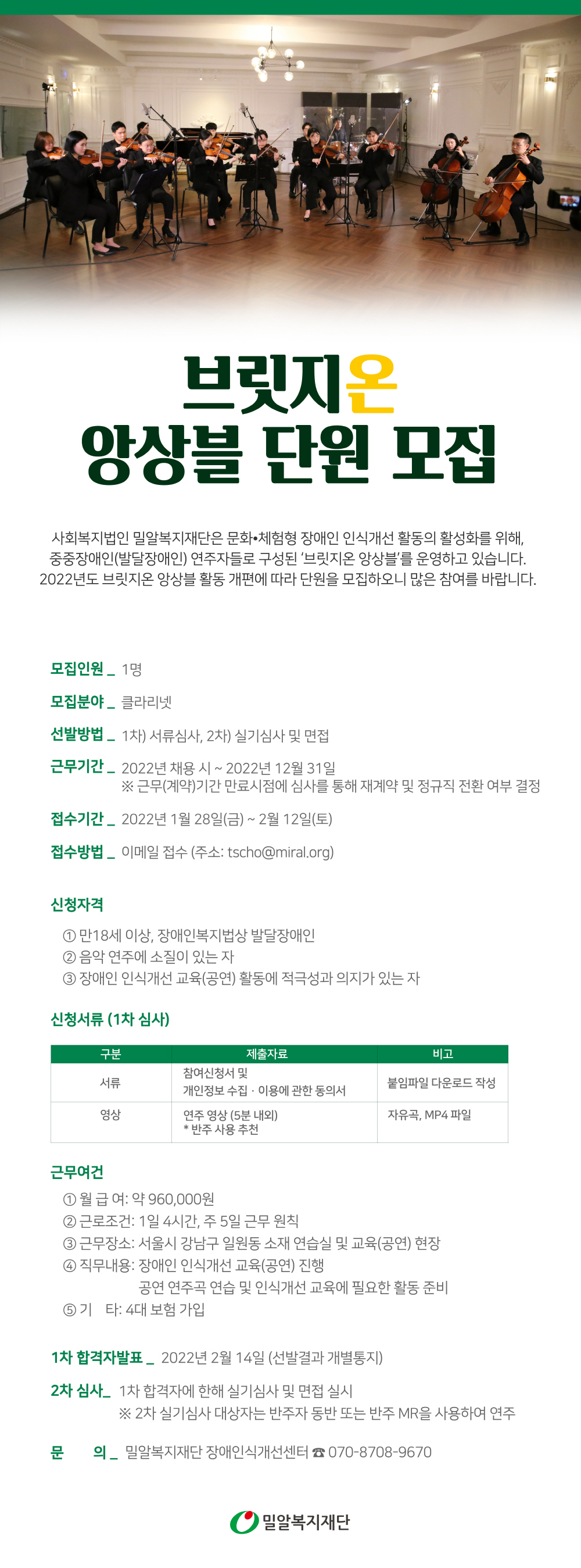 [마감] 2022년 브릿지온 앙상블 단원 모집 (~2/12)