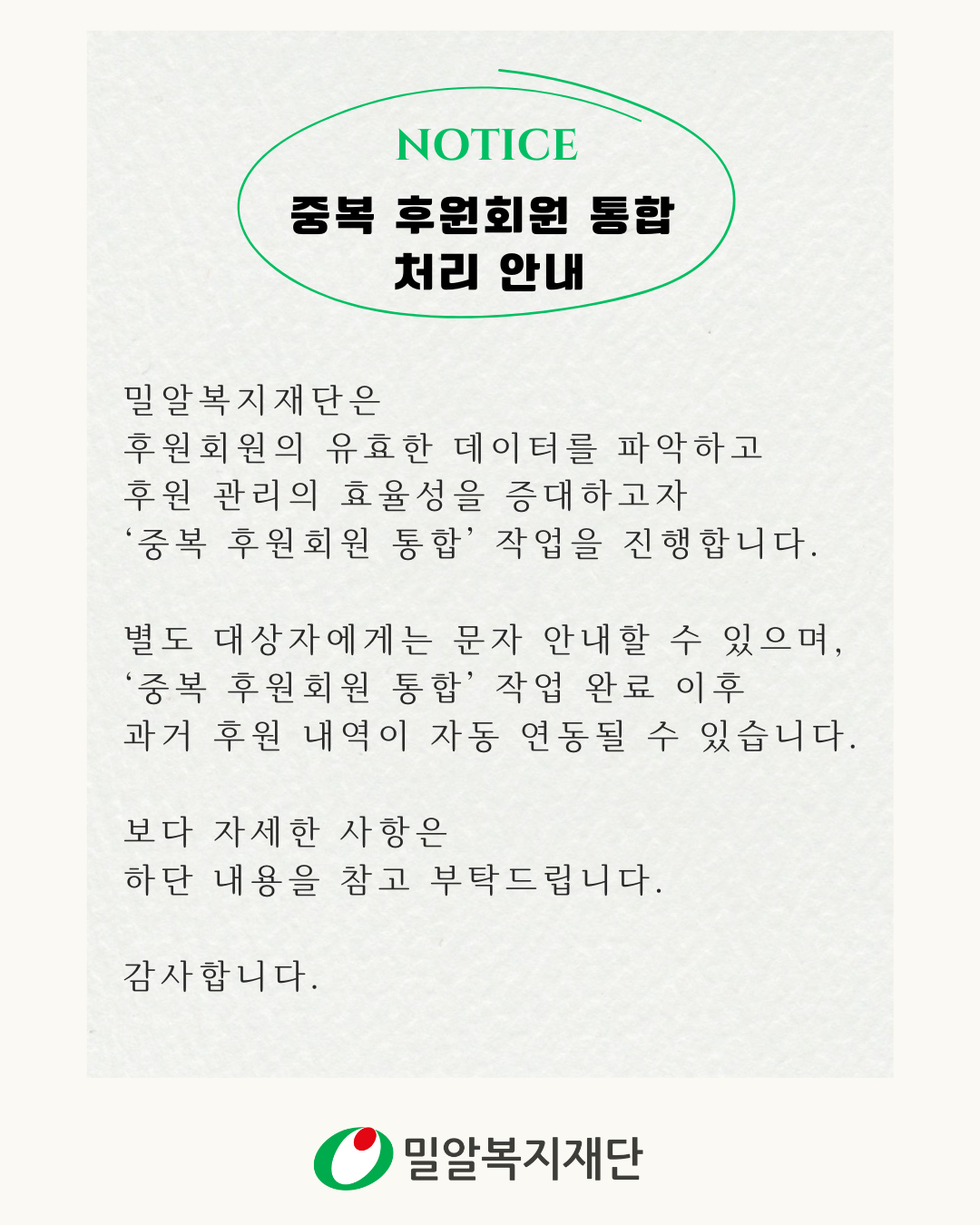 2025 중복 후원회원 통합 처리 안내