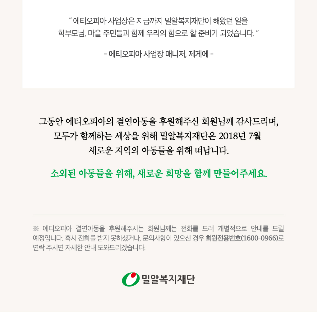 [해외결연]에티오피아 아동결연사업 종료 안내