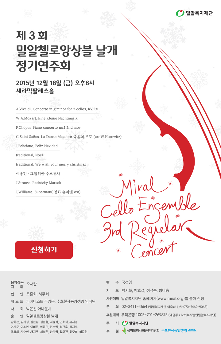 (종료)제3회 밀알첼로앙상블 날개 정기연주회 안내