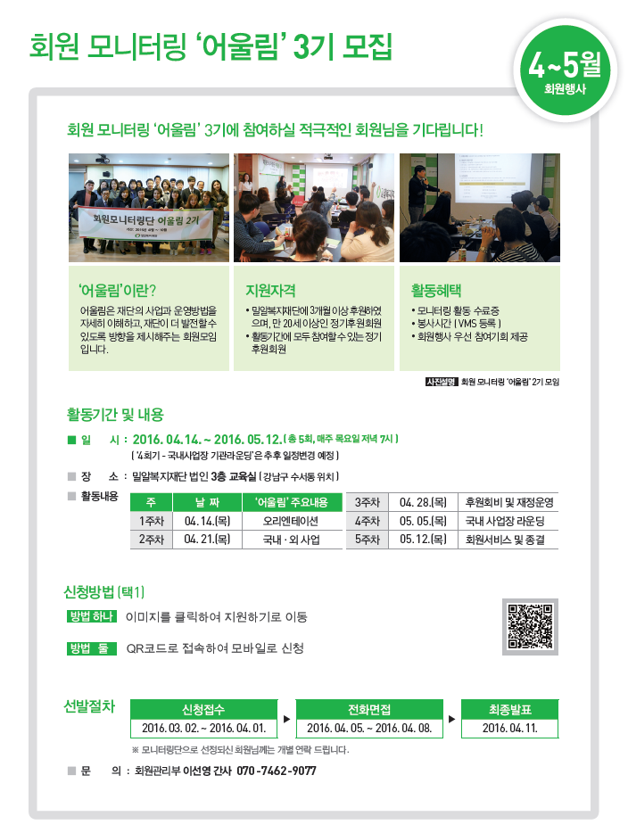 [회원모임] 회원모니터링 '어울림' 3기 모집