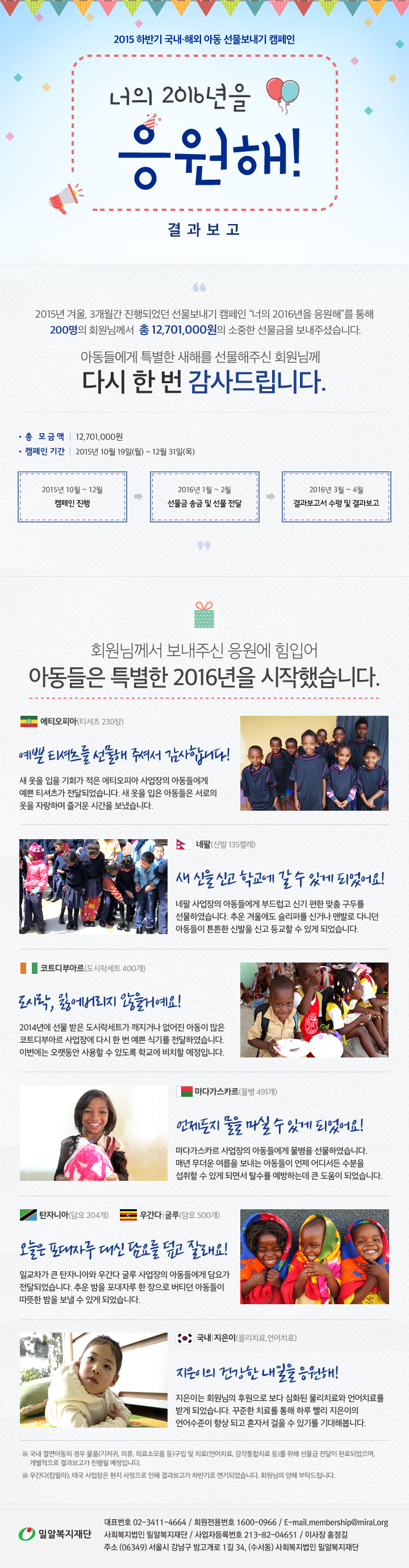 [결과보고] 2015 하반기 국내 해외 아동 선물보내기 캠페인 결과보고