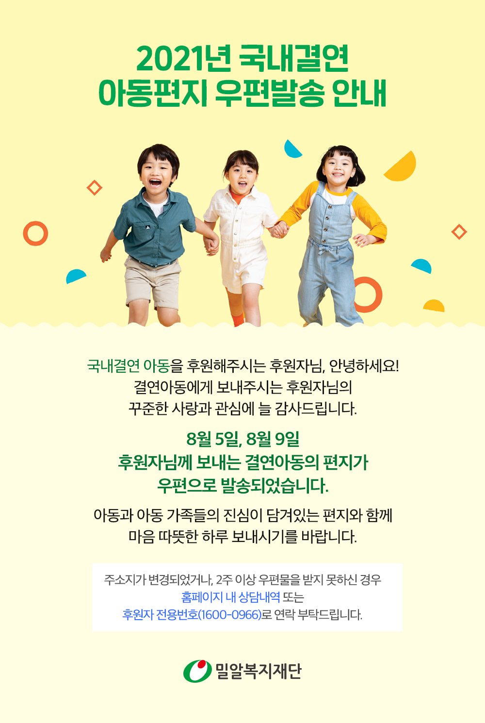 2021 국내결연 아동편지 우편 발송 안내