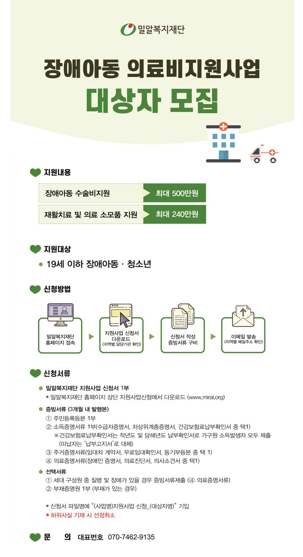 [모집] 밀알복지재단 장애아동 의료비지원사업 신청 안내(상시)