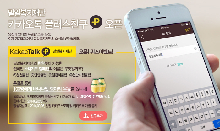 밀알복지재단 카카오톡 플러스친구 오픈 기념 이벤트