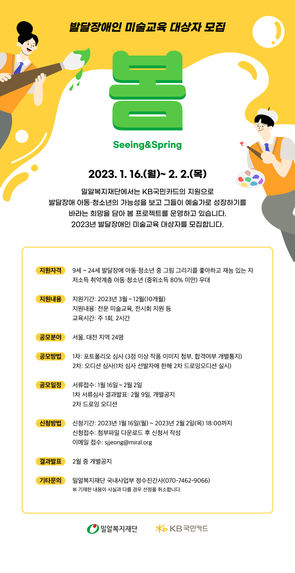 [마감] 2023년 봄(Seeing&Spring) 프로젝트 발달장애인 미술교육 대상자 모집 (~2/2)