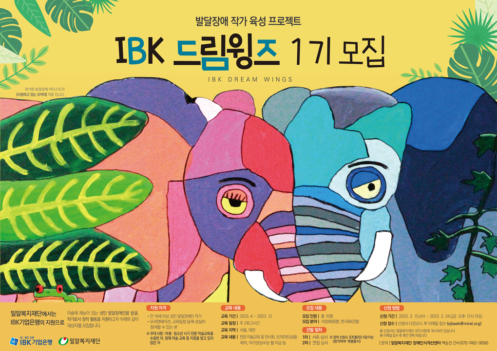 밀알복지재단에서는 IBK기업은행의 지원으로 미술에 재능이 있는 성인 발달장애인을 발굴,