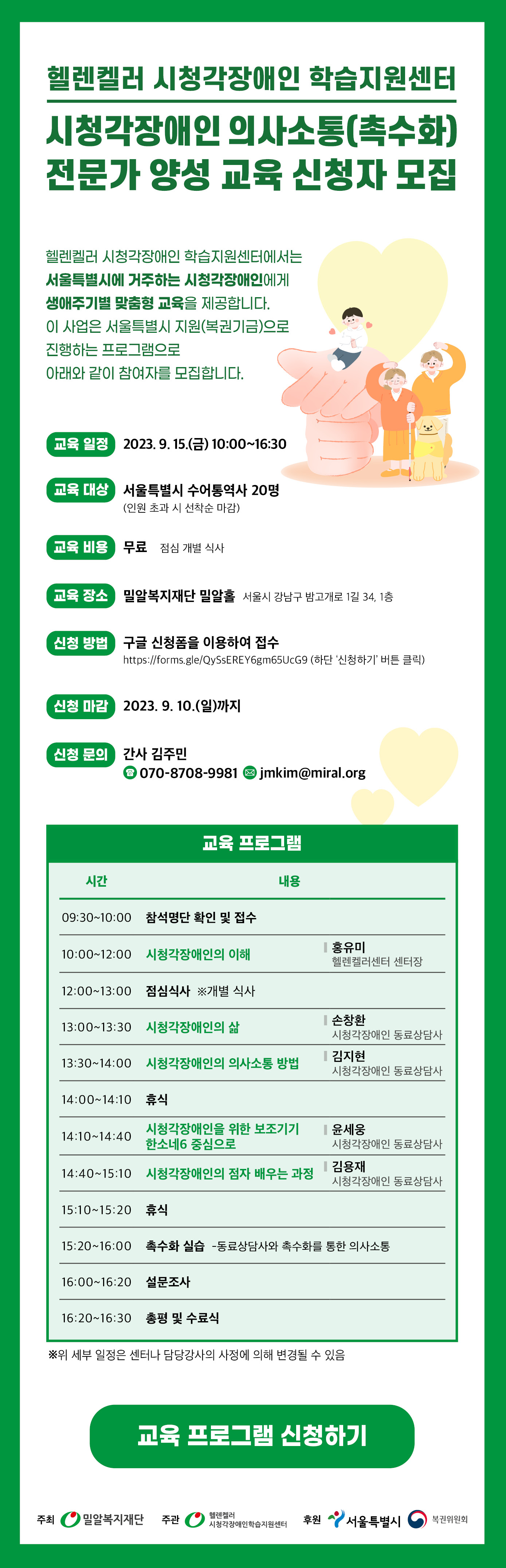 [마감] 2023 시청각장애인 의사소통(촉수화) 전문가 양성 교육 신청자 모집 (~9/10)