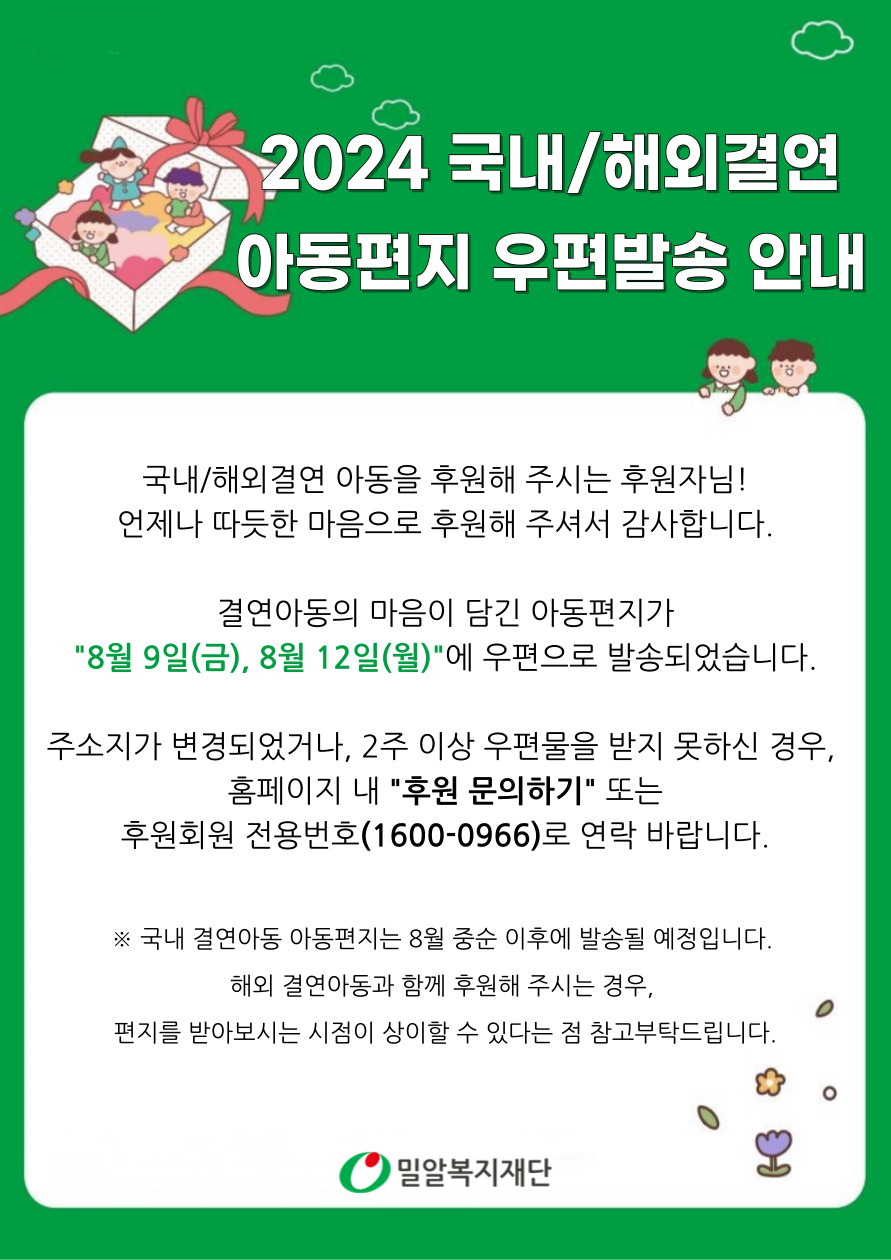 2024 국내/해외결연 아동편지 우편발송 안내