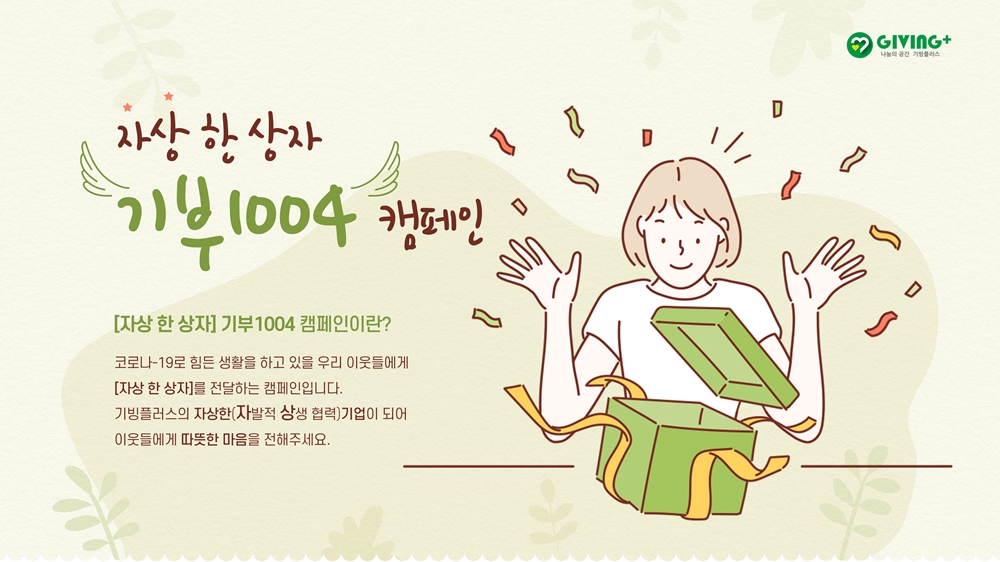 밀알복지재단(이사장 홍정길)이 운영하는 기빙플러스가 기업을 대상으로 ‘자상 한 상자 기부1004(givingplus.co.kr/attentive)’ 물품 기부 캠페인을 지난 4일부터 진행하고 있다.
