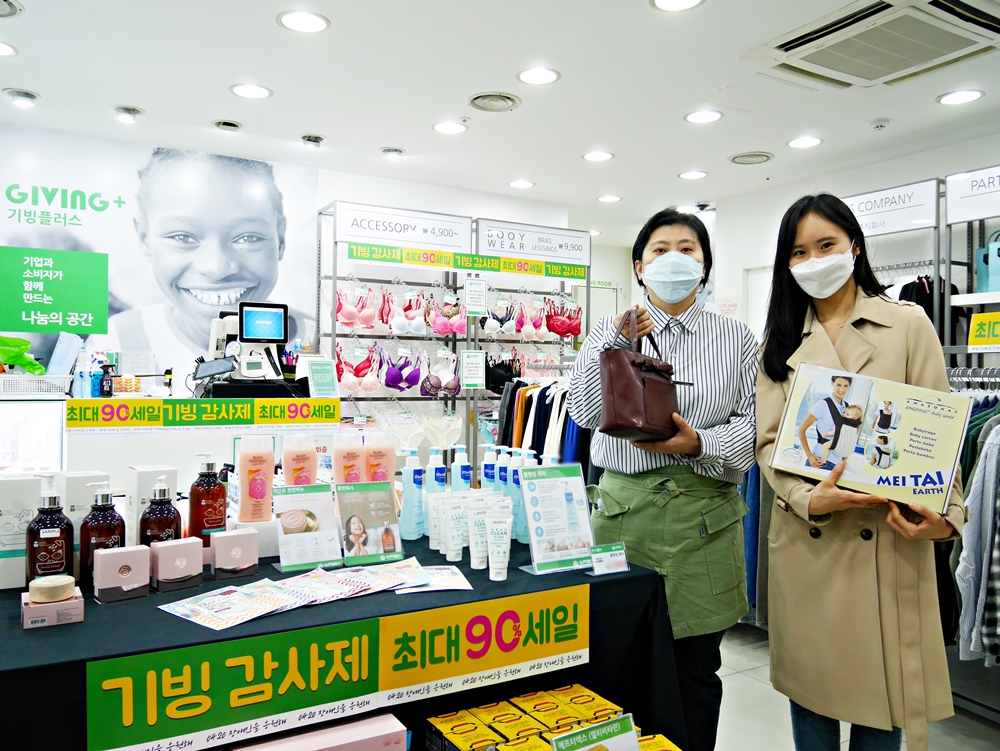 전 지점 고객을 대상으로 진행되는 '기빙 감사제'에서는 품목 제한없이 전 상품이 최대 90%까지 할인된 가격에 판매된다. 이 기간내 방문 및 구매고객을 대상으로 감사 사은품을 증정하는 이벤트도 진행된다. 감사제 기간에도 상품 구매 금액의 5%를 포인트로 적립해주는 혜택은 그대로 유지된다.