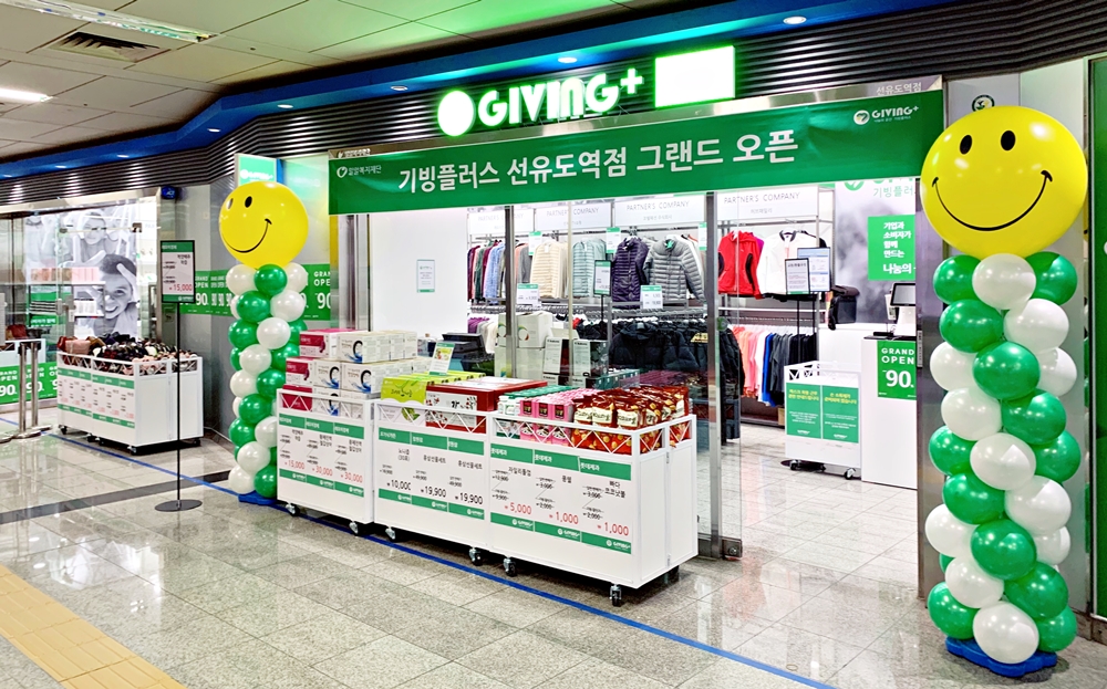 기빙플러스 선유도역점은 68.26m² 규모로, 유명브랜드의 의류와 신발, 속옷, 생활용품 등을 1200여점의 제품을 최대 90%까지 할인된 가격에 판매한다. 이날 선유도역점의 오픈을 축하하며 래오이경제, 아이리스코리아, 케이덴스디스트리뷰션, 신영상사, 굿모닝월드 등이 제품을 기부하기도 했다.