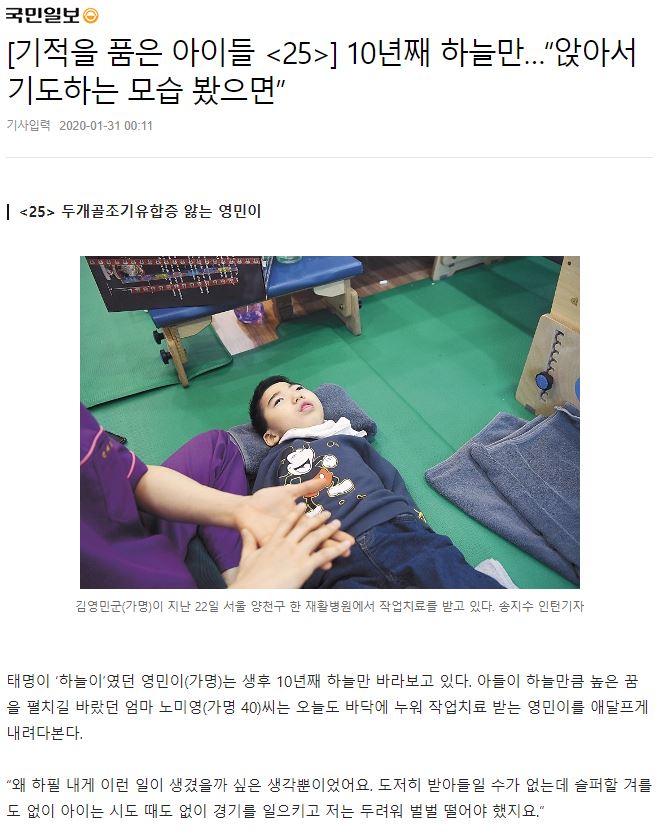 [기적을 품은 아이들 <25>] 10년째 하늘만…“앉아서 기도하는 모습 봤으면”