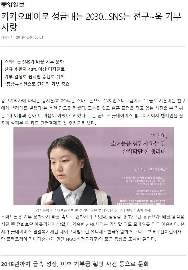 [중앙일보] 카카오페이로 성금내는 2030…SNS는 전구~욱 기부 자랑