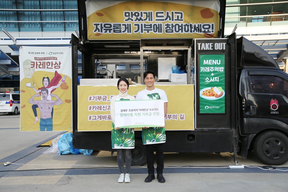 행사는 지난달 12일 서울을 시작으로 광주, 부산에서 개최됐다. 총 3차례의 카레한상 푸드트럭을 통해 김재우 부부는 팬들에게 1,100인분의 카레요리를 대접했다. 음식을 받은 팬들은 푸드트럭 앞에 비치된 모금함에 원하는 만큼 음식값을 기부했다. 이렇게 모인 1천여만원의 기부금은 밀알복지재단을 통해 도움이 필요한 장애아동들을 위해 사용된다.