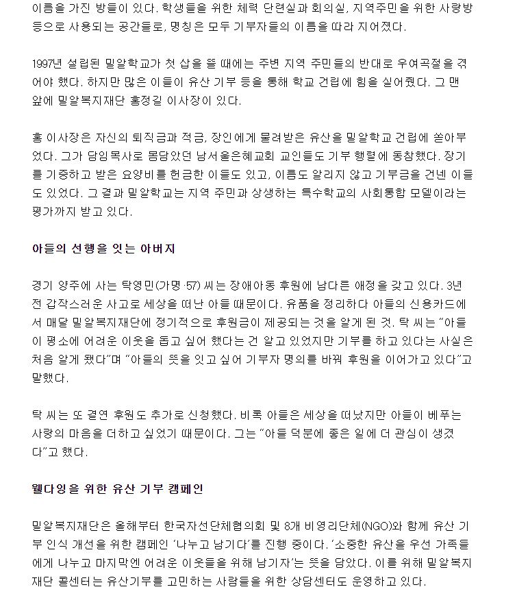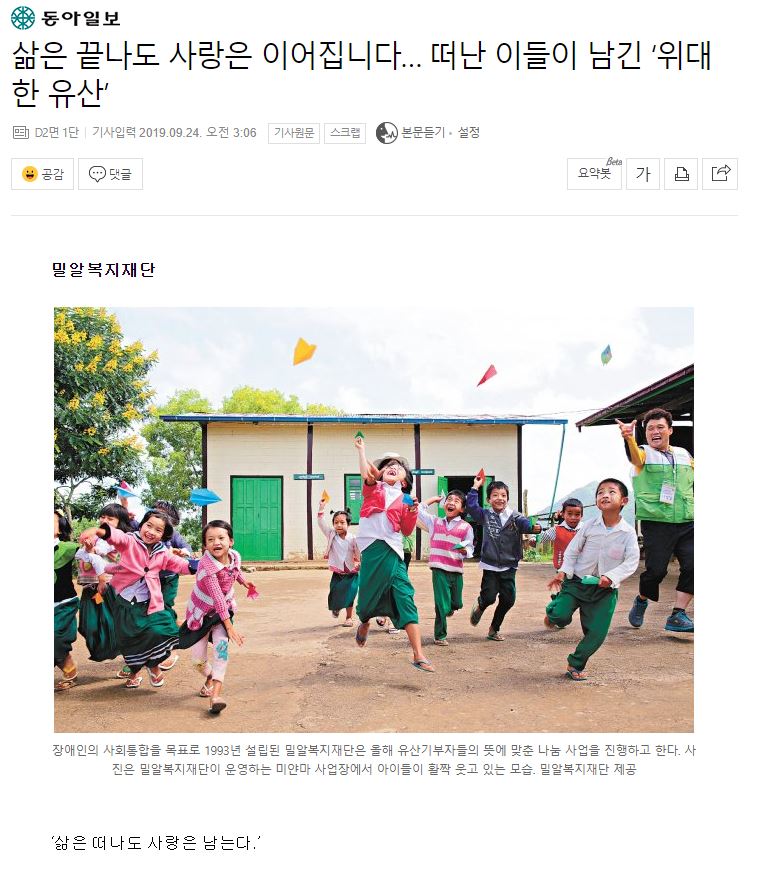 [동아일보] 삶은 끝나도 사랑은 이어집니다… 떠난 이들이 남긴 ‘위대한 유산’