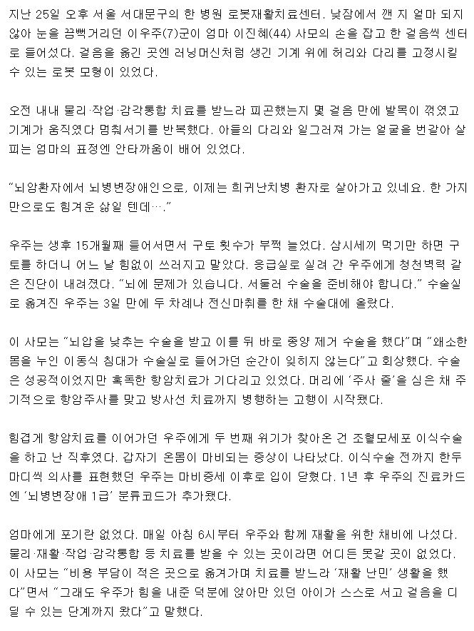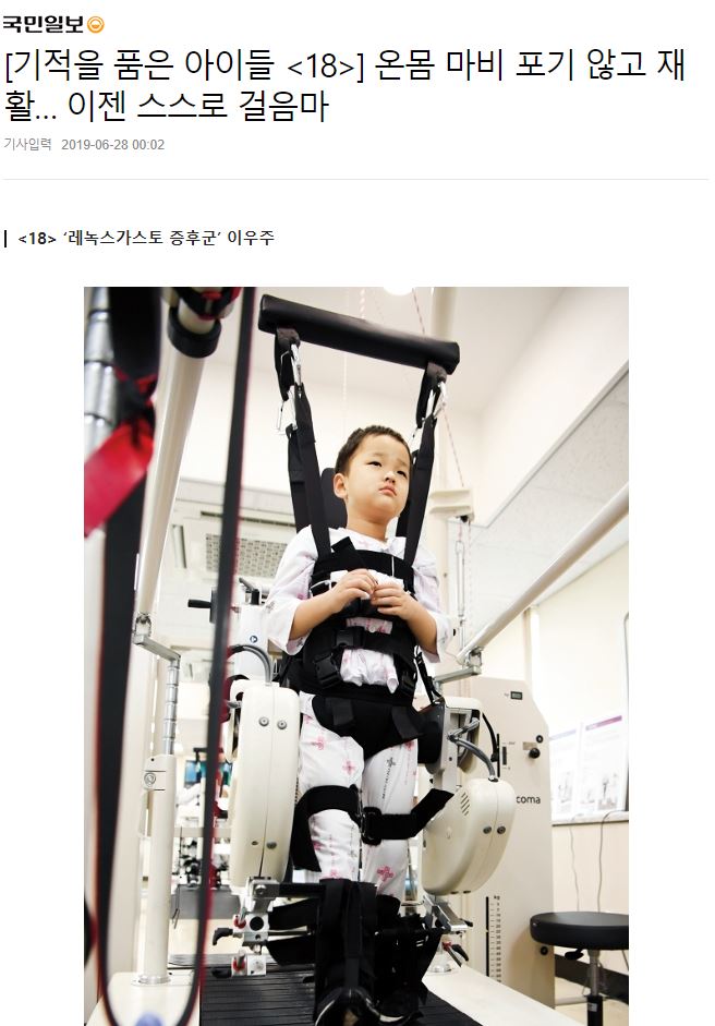 [국민일보] [기적을 품은 아이들 <18>] 온몸 마비 포기 않고 재활… 이젠 스스로 걸음마